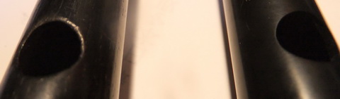 これならわかるでしょう。 左が古いチャンター。右が新しい。 以上撮影:2012年12月12日。 (公演回数1113回を終えた段階) 気温の低い冬季になると、バグパイプの音はいろいろな問題を浮き彫りにする。 そんなとき、自分の演奏スキルのせいにしないで、楽器の状態を見てみよう。 リッヂの立ってない穴になった古いチャンターでは、ツヤのある装飾音を出せな くなる。またテープ修正したチャンターでは、高音の音量が落ちる。 夏や室内演奏では、このような弱点は目立たないので、これらのメンテナンスス キルは、厳冬期野外型バグパイパー向けのものだが。 |