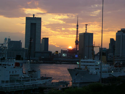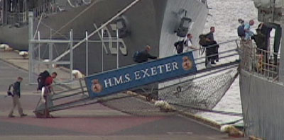 2004年7月11日。ひっそりと晴海でなごむ、英国海軍の巡洋艦「エクスター」