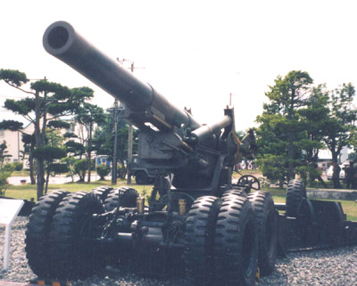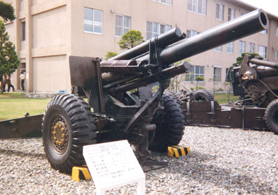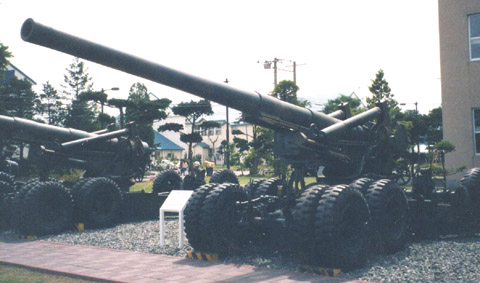 『203ミリ榴弾砲(20榴)』 真駒内駐屯地では常設展示をしていた61戦車や戦闘機、軽装甲機動車の試作 車を廃棄処分して過去の遺産を簡単に捨てる愚かな行為をする部隊もある中、こ の北千歳駐屯地は素晴らしい試みをしていた。 特科団で過去に使用していた火砲を収集し『火砲展示場』を完成させていたの だ、去年5月に完成したばかり。 |