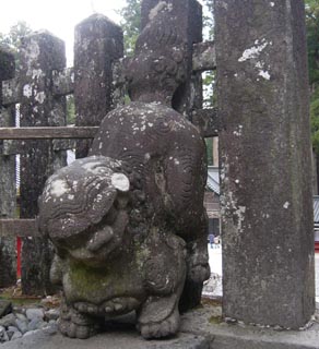 お尻が重くてちょっとしんどい顔。でも、なぜ逆立ち? 世界遺産の日光東照宮にて。 これで驚いてはいけない。海外には虐待系の狛犬もいる。
