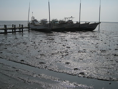 模様の描き手が登場した。 有明湾といえばムツゴロウだね。 干潟にウヨウヨいるムツゴロウくんは、底をはいずるだけではなく、 |