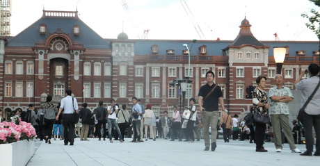 東京駅前。観光地ってぽく盛り上がってます。 |