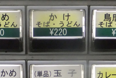 ソバの値段が気になる年越しソバの季節だね。 北千住駅ホーム=220円。 2012年12月15日撮影