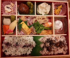 といった東横関連にこだわった内容ではなく、わりと普通の幕の内だった。 でも、大きいほうのご飯は車両の形? |