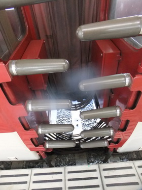 近鉄電車の名物として有名な、このツノのようなハシゴのような突起。 ハシゴではなく、ツノだね。 近鉄といえばパッファローズだもん。 |