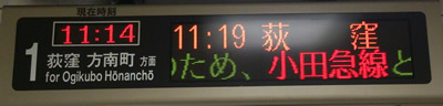 千代田線が小田急線と直通運転をやめてるよ、という表示なのだが、 理由が、小田急線内の地震だって。 地震発生から数時間経ってるのにこの表示だ。 丸ノ内線のホームの表示を並べたのだが、読みにくいって? |