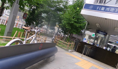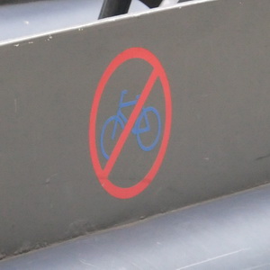 自転車禁止マークだ。 通行禁止なのか、駐輪禁止なのかは 各自のセンスと都合にお任せ。 撮影:2014年9月8日 |