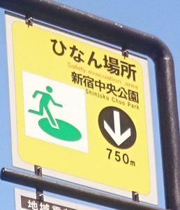 日本の場合は、避難場所に自転車が集まっている。 |