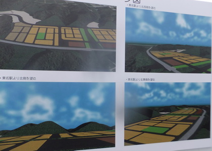 東名駅〜野蒜駅のところの山を切り崩して、 一大ニュータウンが出来上がる。 |