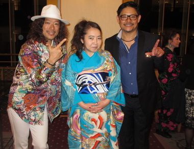 2015年10月23日(金)に目黒雅叙園にて表題の パーティーが開催された。 左のギターが泉拓真さん(アントニオ古賀さんの長男) ヴォーカルは、‘J`アントニオ(アントニオ古賀さんの次男) |