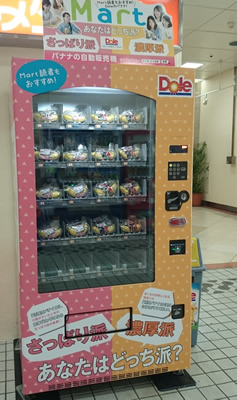 バナナの自販機である。 そのバナナに濃厚系とさっぱり系があるのである。 値段も違うよ。 濃厚バナナは180円、さっぱりは150円だ。