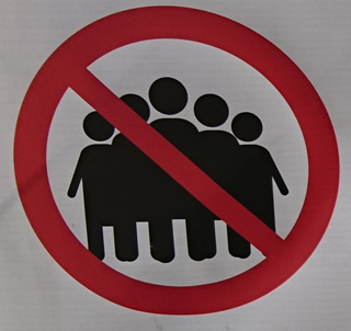 たむろ禁止マークだった。「たむろ」って、集会という意味だったのか。 なんだか、たむろというより、整列してる感じもいないではないが、 とにかく、たむろってはイケマセン。