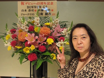 近衛麗衣が贈ったお花 2021年9月26日(日)に恵比寿ザ・ガーデンホール にて上記のライブが開催されました。 近衛麗衣は、アメリカのロック・バンド「AEROSMITH」と 「KISS」の来日公演の前座で「BOWWOW」のライブを観て 日本にもこんなロック・バンドがあったのかと衝撃を受けました。 そして、追っかけから写真を撮り始め、写真学校に進学して、 「ロック写真家」として人生のキャリアをスタートさせたのです! |
