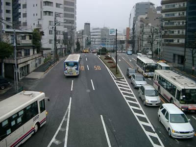 富ヶ谷交差点から山手通り初台方面をのぞむ。