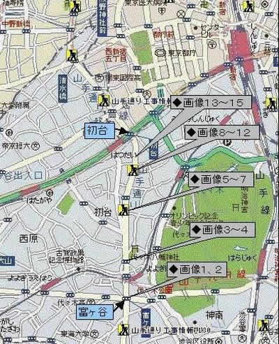 富ヶ谷歩道橋から撮影しているが、この歩道橋は山手通り拡幅工事の進行に伴い撤