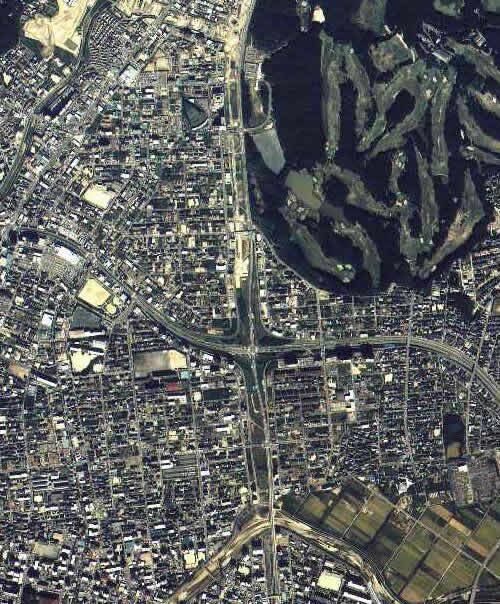 これらの交差部(植田IC)の右下(南東)の梅が丘地区で少しだけ整理済みの箇所