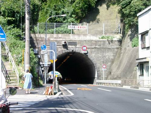 横須賀街道(R16)横浜方向車線、新田浦トンネルをのぞむ。