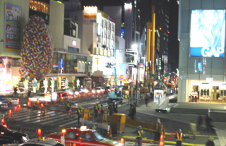 そして夜、渋谷区神宮前交差点、表参道との交差点のやや南。2003年1月24日、 22:30 |