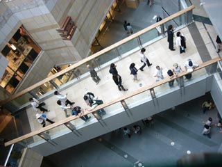 迷路が楽しめる六本木ヒルズ。構造は複雑でも、厨房パフォーマンスで魅せる演出は ちゃんと押さえてる(左下の4枚パネルは厨房の映像)。 |