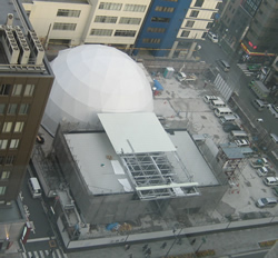 プレハブで覆われてドームは見えなくなっていく。2006年11月29日。 |