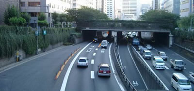 10の新富町出口トンネル の左側に、そのスロープが映っている。