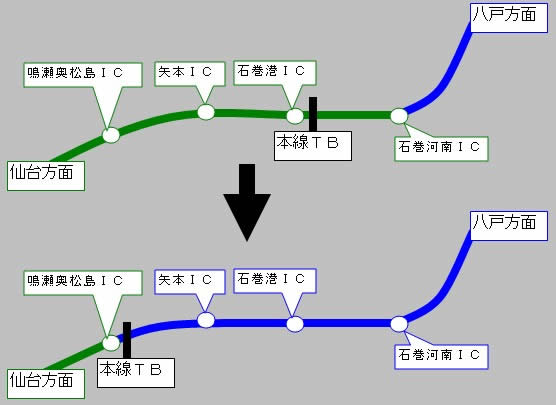 開通させていた。この料金所を撤去して、さらに仙台寄りの鳴瀬奥松島ICの本