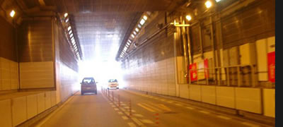 区へのオフランプの分岐を視認することができる。単トンネルの対面通行なの