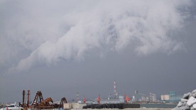 2011年4月16日、12:56。 真昼間なのに、地震雲でこんなにダークになっちゃった。 場所は、小名浜火力発電所の上空(福島県いわき市) 以下、12:53〜12:56までの3分間の地震雲の動き |
