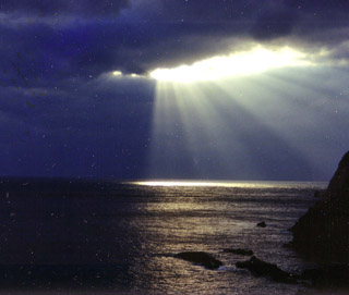 1986年3月2日、鹿児島県坊津町坊ノ津湾。 国道226号より。 光のカーテンは、オーロラだけではないね。