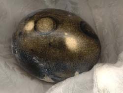 箱根湯元 大涌谷より。 一個で7年、2個で14年延命になる黒卵。 毎日食べると、余命が果てしなく伸びてしまうのである。 それにしても、袋に書かれていた句は、難しすぎる。 「箱根みて おもシロいかな 黒タマゴ」