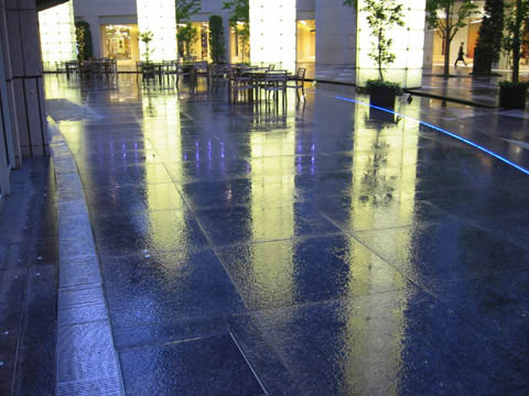 6月2日に予定してたライブは、雨天のため6月3日に順延。 雨で濡れて反射するライトタワープラザ |