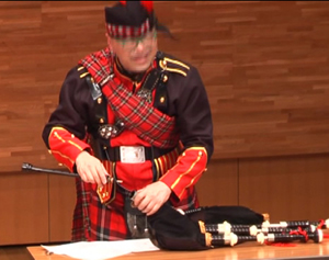 楽器説明や文化背景説明+バグパイプ演奏という構成。 |