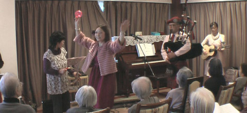 2011年2月25日。 キュイートピー・バグパイプ隊(別命=さっちゃんと音もだち) この日は、なぜかロシア歌曲のリクエストが続き、 バグパイプではロシア国歌(2001年制定)を演奏。 アライブ杉並松庵