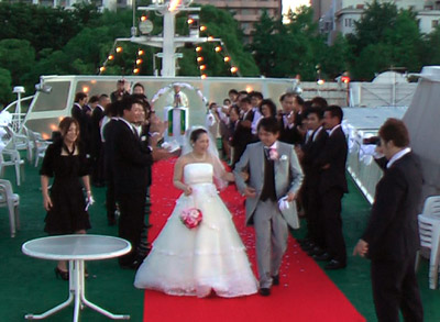 横浜港は、船上結婚式の有名スポットになりつつある。 |