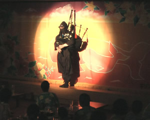 忍者バグパイプがステージに上がっても、まだしばらくは、幕は上がりません。 |