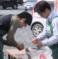 大船渡長洞応急仮設団地では、集会場の中も使わせてくれたので野外と室内でテ