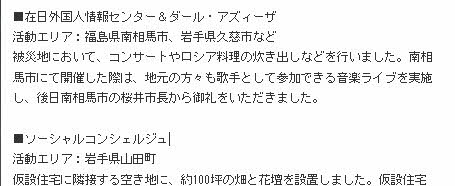 ビジネスの世界だと、資金ゲットの入り口となる契約締結をした事務業者の取り 分が多くなることが多いが、支援活動だと現場の力仕事など目に見える部分重視 になるのかもしれない。確かに、調査費や事務所家賃や職員の給料などにたくさ んの義援金や寄付金が消えてゆくのはあまり好まれないもんね。