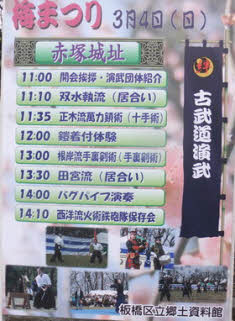 板橋区の梅まつりは、古武道としての鉄砲隊とバグパイプ。 もうこの組み合わせで5年目になる。 2012年3月4日。 |