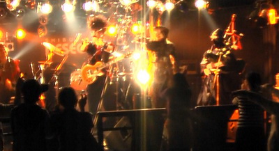 2012年4月26日。 渋谷デセオでは、バグパイプに負けじと、花火も炸裂。