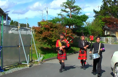 そんな、本吉町平貝地区でバグパイプ行進がスタートした。