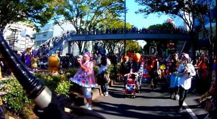 パレードの表参道ですれ違ったところをバグパイプ装着型カメラが捉えた。