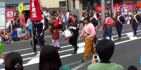 甲州街道パレード。 鉄砲隊+バグパイプ軍楽隊。