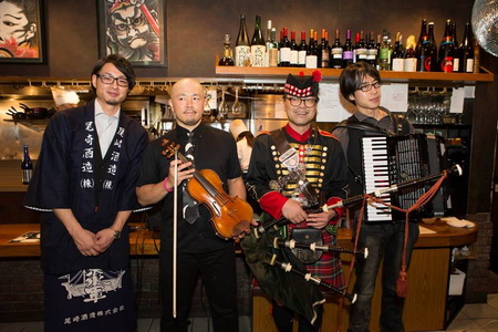 今回のキャストには、なぜか、SMショーなどに深くかかわってるアーティスト が多かったのが、カトケン、新しい業界へのドアかも?。SMアーティストの女 性は、バグパイパーには変態Mっ気があることを、すぐに見抜いてしまった。 〜cast〜 尾崎大 (尾崎酒造) 尾崎有香(尾崎酒造) 相馬秀行(BV日本酒エージェント) 辻村大(青森県平内町辻村酒店) 西垣恵弾(バイオリン) えびさわなおき(アコーディオン) 加藤健二郎(バグパイプ) 大津ケント 対馬利行 小宮山美紀 新井朱美礼 蘇芳眞矢(フライヤーデザイン) フクサコアヤコ(オフィシャルカメラ) カズシェフ ------------------------ |