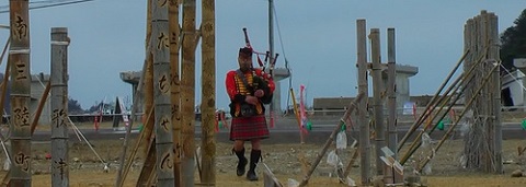 バグパイプ隊、東北津波被災地紀行も6年越え。 2017年4月23日。ハマーレ歌津オープンの日。 バグパイプの音色に包まれる。