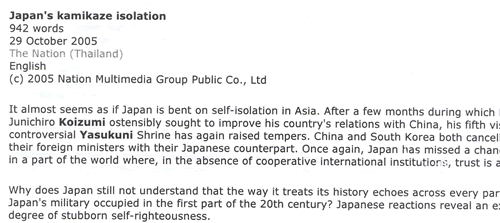 『ザ・ネイション』(タイ) 2005年10月29日付