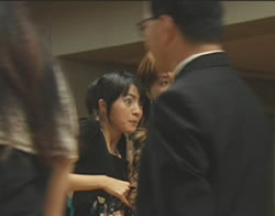 別の角度からのシーンでも、女優ステファニーと満島ひかりの脇を通過する役で 出演のカトケン。 |