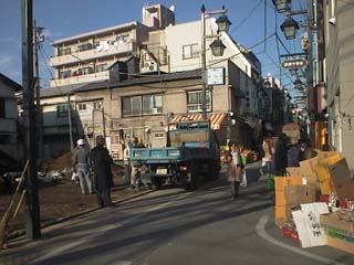 線路際の安い八百屋が取り壊された。 ビルが建つのかな。