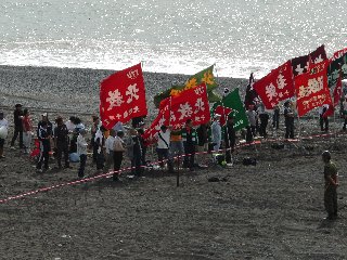 浜大樹上陸訓練を熱烈歓迎する歓迎委員会。午前6時過ぎ頃、何やら叫び声が