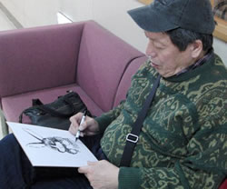 次の部隊訪問まで時間調整のため東売店へ行く、そこで先生に色紙に画を描いて頂いた。