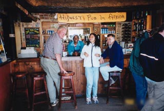 標高3千メートル近くあるパブ---アフリカで最も標高の高いところにある。 ベランダの外に羊がたくさんいた。